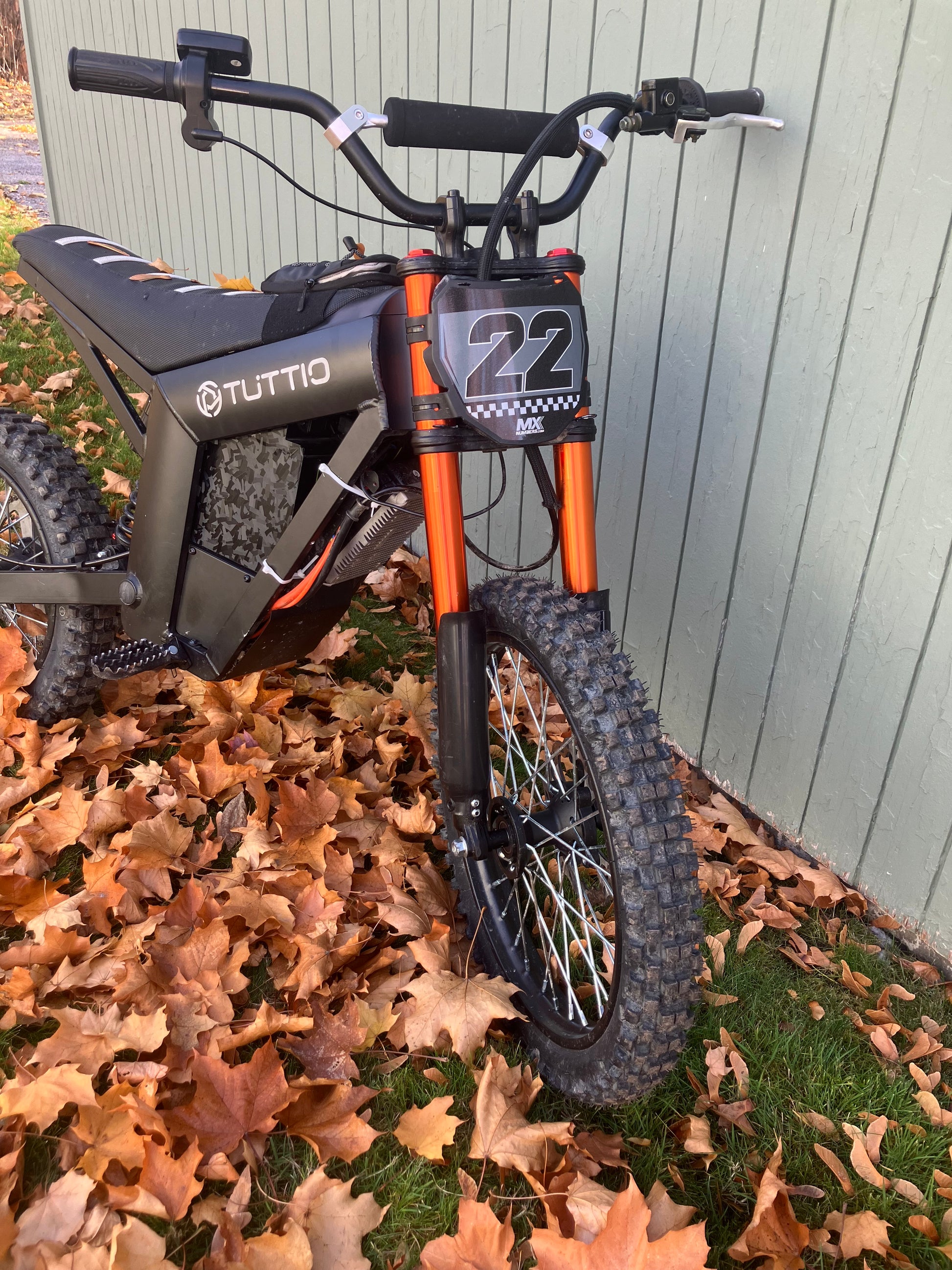 full tire set blacked out rims silver spokes fits all Tuttio Soleil 01 12mm 17 in in the front and 14 in the rear. This upgraded makes the bike a lot bigger.